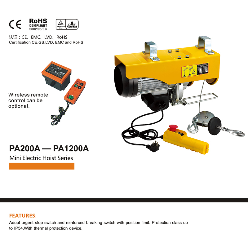 ·Adopt urgent stop switch and reinforced breaking switch with position limit, up and down limit device,protection class up to IP54. with thermal protection device.